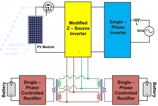 - Ramanathan, G.; Bharatiraja, C.; Athikkal, S. Design and Implementation of Modified Z-Source Inverter for Multi-Port Electric Vehicle Charger. In Proceedings of the 2022 Second International Conference on Power, Control and Computing Technologies (ICPC2T), Raipur, India, 1–3 March 2022; pp. 1–5. [Google Scholar]