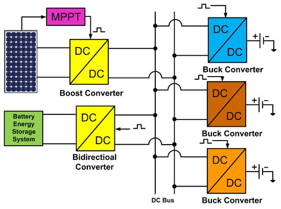 Conventionally, electricity is obtained from thermal, hydro, and nuclear power plants. While fossil-fuel-based thermal power plants can be used to produce power in mega-watt levels, they also produce harmful gases such as carbon dioxide, carbon monoxide, sulphur dioxide, nitrogen oxide, and ash [2], which has led to a steady increase in the global temperature [3], and which in turn has caused the degradation of flora and fauna, and the health of humans. In addition, the depletion of fossil fuels is a significant threat to the continued use of fossil fuel-based power generation. The connection between emissions and fossil fuel depletion is a significant concern today [4]. While hydro plants do not lead to such an issue, the main problems with the hydro plant are related to the submergence of the areas surrounding the dam, the impact on the water resources, and the rainfall amount. The impact depends mainly on the dimensions of the hydro plant [5]. With nuclear power plants, the main issue is related to resource availability, the complexity of control, the potential risk of leakage, and waste disposal. Various nations have developed several policies to prevent nuclear disasters [6]. To prevent the issues resulting from the conventional sources, non-conventional energy sources have been introduced into the power generation sector. Among these resources, the solar photovoltaic (PV) system is being used due to abundant resource availability. Since solar panels can be integrated with vehicles, solar PV is an attractive option as a source to charge EVs. Nasr et al. [7] have comprehensively reviewed solar PV based converters for EV battery charging. Several non-isolated converters suitable for EV battery charging have been reviewed, along with gird integrated converters. The primary issue that needs to be addressed with the use of PV systems is the intermittency and variations of solar irradiance and temperature. The intermittency has been addressed by Jin et al. [8]. Energy optimization is necessary with the use of PV systems, as addressed by Al-Shahri et al. [9].