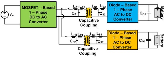 - Vu, V.B.; Kamal, L.B.M.; Tay, J.; Pickert, V.; Dahidah, M.; Logenthiran, T.; Phan, V.T. A multi-output capacitive charger for electric vehicles. In Proceedings of the 2017 IEEE 26th International Symposium on Industrial Electronics (ISIE), Edinburgh, UK, 19–21 June 2017; pp. 565–569. [Google Scholar]