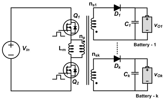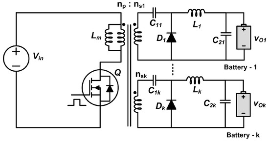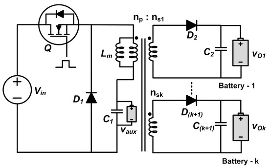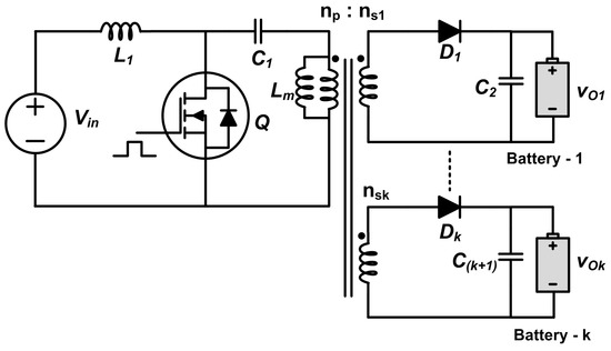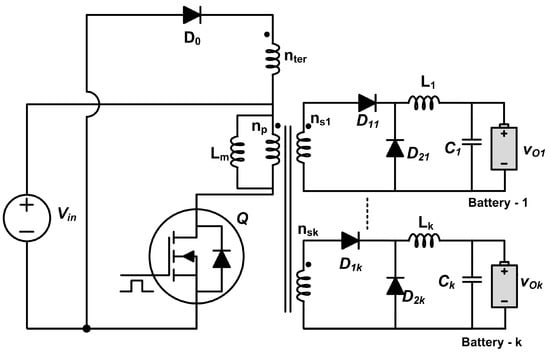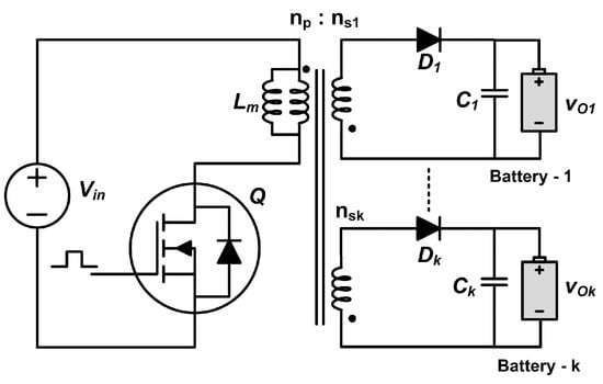 - Graw, J.; Zimmermann, H. Charging multiple batteries using the boost-flyback converter. In Proceedings of the 2012 IEEE International Energy Conference and Exhibition (ENERGYCON), Florence, Italy, 9–12 September 2012; pp. 963–967. [Google Scholar]