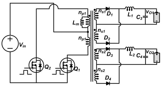 - Two-Switch Forward Converter: Operation, FOM, and MOSFET Selection Guide. Available online: https://www.vishay.com/doc/?91616=#:~:text=The%20two%2Dswitch%20forward%20converter%20is%20quite%20popular%20with%20ATX,having%20no%20body%20diode%20conduction (accessed on 7 December 2022).