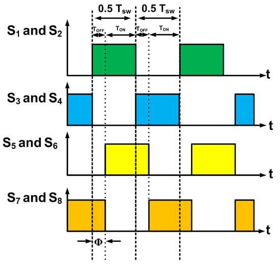 - Ruan, X.; Yan, Y. Soft-switching techniques for PWM full bridge converters. In Proceedings of the 2000 IEEE 31st Annual Power Electronics Specialists Conference. Conference Proceedings (Cat. No. 00CH37018), Galway, Ireland, 23 June 2000; Volume 2, pp. 634–639. [Google Scholar]