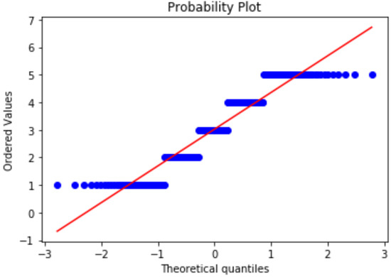 For the regression analysis, we obtain the insights of the regression on Equation (3) using the correlation heatmap visualization shown in Figure 14. The results indicate that people in Bangkok feel positive when they experience the wider road and footpath widths in the driving scene, which assumes that the traffic is not congested. In contrast, people in Bangkok feel negative when they experience obstacles, for example, many cars and motorcycles on the same road, representing heavy traffic congestion. In addition, we visualize the histogram of residuals of the regression model on Equation (3), as shown in Figure 15. The residuals on this plot behave nearly the normal distribution and it does not violate the regression assumption. Hence, the regression model is applicable.