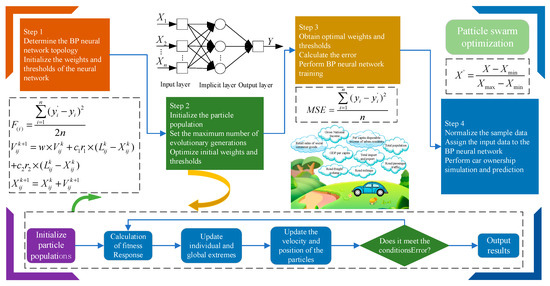 Flow chart of vehicle ownership prediction model optimized by PSO-BP neural network.