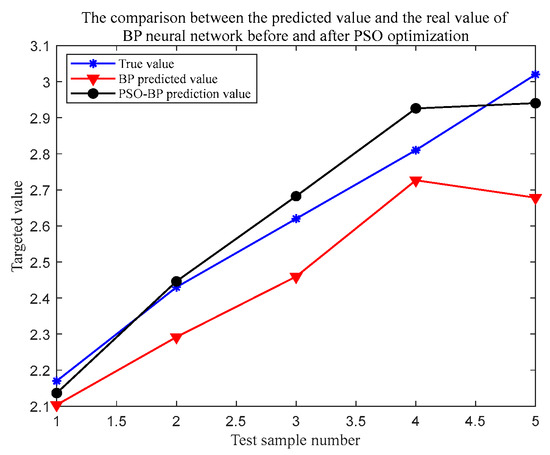 Comparison of BP neural network predicted value and true value before and after PSO optimization.