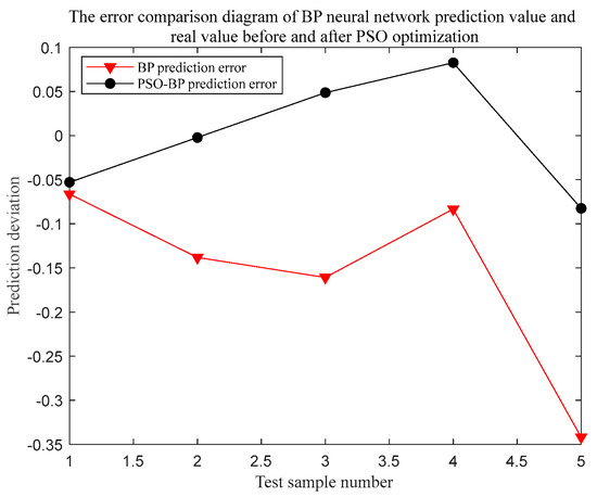 Comparison of error between predicted value and true value of BP neural network before and after PSO optimization.