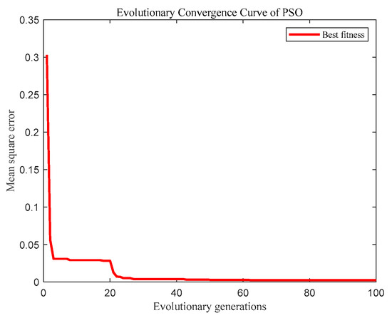 - Calculate the fitness of the particle swarm. The quality of the population is determined by the fitness function, which selects the mean square error between the actual value and the predicted value of the neural network.