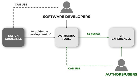 - Coelho, H.; Monteiro, P.; Gonçalves, G.; Melo, M.; Bessa, M. Authoring tools for virtual reality experiences: A systematic review. Multimed. Tools Appl. 2022, 81, 28037–28060. [Google Scholar] [CrossRef]