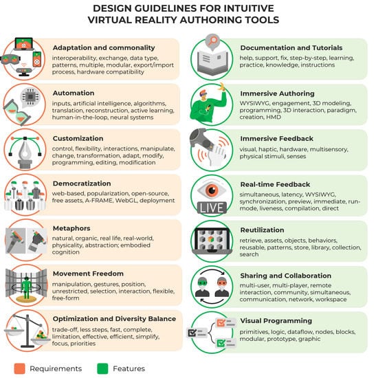 Chamusca, I.L.; Ferreira, C.V.; Murari, T.B.; Apolinario, A.L., Jr.; Winkler, I. Towards Sustainable Virtual Reality: Gathering Design Guidelines for Intuitive Authoring Tools. Sustainability 2023, 15, 2924. https://doi.org/10.3390/su15042924