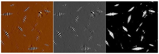 By the aid of AFM technologies, a lot of studies in terms of the microscopic morphology of asphalt were investigated [120]. After considerable development, AFM has been widely used in research on bitumen micro-fields. In terms of the ageing behaviour of asphalt binders, it was found that the microstructure of asphalt detected by AFM could be termed the “bee-like structure” (Figure 12). This type of structure could be generated during the ageing of asphalt, as a result of the aggregation of asphaltenes [121]. For the cognition of the “bee-like structure”, most scholars have the same view that asphaltenes are formed during asphalt aging, and also some academics think that the “bee-like structure” is a consequence of crystalline paraffin contained in asphalt [122]. There is not a unified opinion regarding the formation of the “bee-like structure”, but the phase change of the surface microstructure and micromechanical parameters during the aging process of asphalt can effectively help quantify the degree of aging.