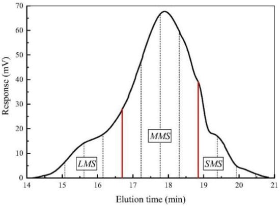GPC diagram of asphalt (large molecular size (LMS), medium molecular size (MMS) and small molecular size (SMS)) [125].