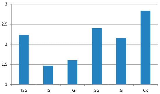 Figure 5 presents two main sets of results. Somatosensory comfort in the TG and TS community structure areas was basically at the level of “thermal comfort”, while that in the TSG, SG, and G community structure areas was at the level of “thermal discomfort”. The reason for the former finding may lie in tree canopy shielding, which meant that direct solar radiation intensity and air relative humidity in the forest were controlled within a certain range. In addition, there were relatively few vegetation layers in the forest, which was conducive to the flow of air in the horizontal and vertical directions, making the temperature feel more comfortable. Although the TSG community structure had full canopy coverage, space in the forest was limited, which restricted airflow and thereby limited the dissipation of air humidity and heat. Although the SG and G community structure areas had good ventilation, they experienced strong direct radiation, making them feel hot.
