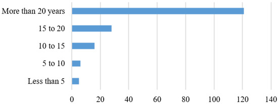 As the aim of the research was to understand how infrastructure megaprojects can be established on premises likely to lead to success in the Australian and New Zealand context, we collected data from experienced practitioners predominantly located in NSW, Victoria, Queensland, and NZ (Figure 1). Respondents from different areas increase confidence and reliability of the data [41]. Following the suggestion of Klein & Muller [42], we sought responses from the most qualified sources; hence, most of the respondents had more than twenty years experience working in infrastructure megaprojects (Figure 2). Ninety percent of the respondents had more than ten years experience and held senior positions in their organizations, such as director, general manager, or project manager. The respondents belonged to different sectors involved in infrastructure megaproject delivery, such as business advice, government, consulting, construction, and industry associations. Thus, we collected data from people able to contribute knowledgeably to our research agenda given their experience, place of experience, and sector, as per the recommendations of Bono & McNamara [43].