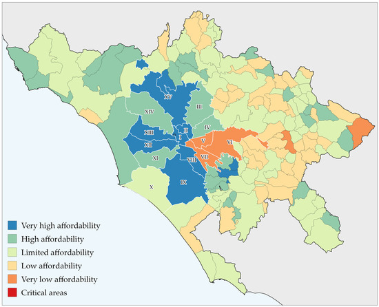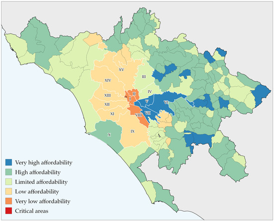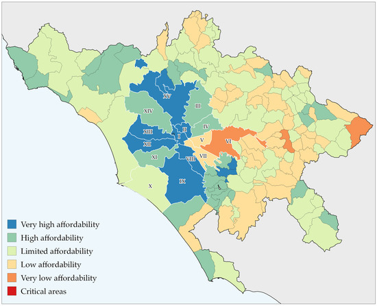 According to Lelo, Monni and Tomassi [61], income is unequally distributed in the Municipality of Rome. Using data from the Ministry of Economy and Finance on the incomes declared by Roman taxpayers for 2019, the city’s economic inequalities emerge. Thus, it can be noted that among Rome’s districts, the average income per taxpayer is highest in districts I and II, particularly the areas of Parioli, Quirinale and Spagna. The lowest average income can be found in social housing districts and former illegal housing suburbs, e.g., the VI district (such as, Tor Bella Monaca and Ponte di Nona).