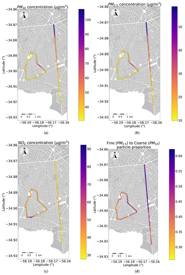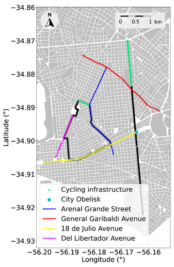 Even though our proposal seems to be close to many other methodologies carried out by other researchers all around the world, we think in this case the main difference is the close interaction with the cycling groups. It has been a way to ensure working on relevant routes and having a good retrofitting for the interpretation of field data. If only the authorities’ point of view were to be considered, the possibility of generating enough field information on relevant routes would be restricted. This working methodology can be applied to any other neighborhoods in Montevideo and, in general, in every urbanization where encouraging active transport is an important issue but improving the cycling infrastructure is also a must. The deeper the knowledge about the place and especially the people of the place, the more useful the outcomes of the study would be. Social complexity is not to be avoided, but to work with [36], in order to involve the citizens in our project. In addition, the application of this methodology could be useful to discover air pollution hot spots in a city, especially in those where air quality is not controlled, or where there is a reduced number of fixed air quality monitoring stations presenting limited spatial coverage. Moreover, this methodology could be applied in citizen science projects as well.