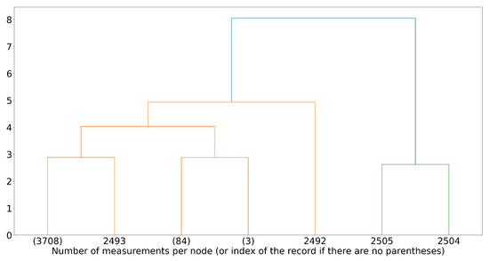 Cluster analysis comprises separating the records under study (in this case, averages per street between intersections of the considered parameters) into different groups with characteristics that are previously unknown. In general, even the number of groups to be formed is unknown before performing the analysis [31]. The most widely used procedures are generally of the hierarchical-agglomerative type. A hierarchy of group sets is built, each of which is formed by the union of two preexisting groups (the assignment of records to groups cannot be undone during the grouping process). In the beginning, all measurements belong to different groups, and at the end of the procedure, all records belong to the same group [31].