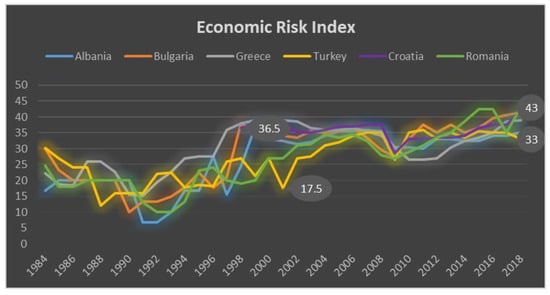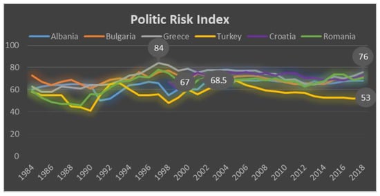 Six Balkan countries were included in this study: Albania, Bulgaria, Greece, Croatia, Romania and Turkey. When the 1984–2018 economic, financial and political risk data of Turkey and Greece are analysed according to the countries in the region, it can be seen that the performance and political and financial risk indicators of Turkey and Greece are at high levels (See
