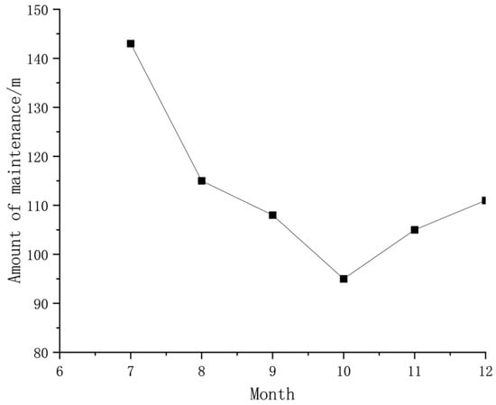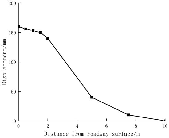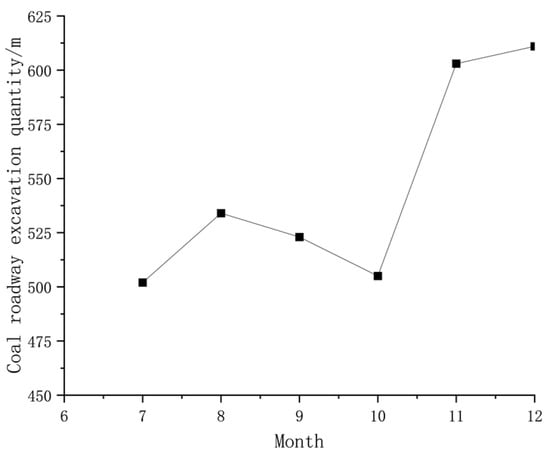 - The new support scheme is applied to the engineering practice of the straight wall semi-circular arch roadway in the deep fracture zone of the west wing return air roadway in Yuandian No.2 Mine. The multi-point displacement meter measures the pre-stressed anchor compression arch’s displacement distribution, and the measured results are mostly consistent with the findings of the study. After the formulation of the new support scheme, the amount of coal roadway excavation increased by 71.33 m/month on average, the maintenance amount of extraction roadway decreased by 112 m/month on average, and the extraction rate increased by 41%.
