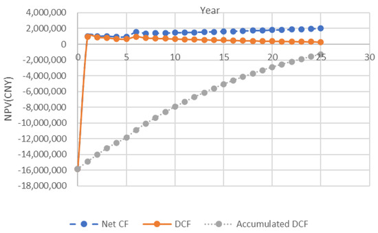 DCF analysis [24,25,26], a dynamic financial-analysis method, is usually adopted for the techno-economic evaluation of energy development such as distributed-PV development. DCF analysis aims to determine the time value of an investment. This method is typically adopted to investigate a potential investment opportunity [27,28]. A financial-analysis model is established based on the DCF method and is embedded in a techno-economic evaluation, aiming to examine the economic viability of a distributed-PV project in China. This study develops a software tool with the Visual Basic language to calculate the results and to display them.