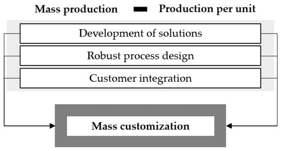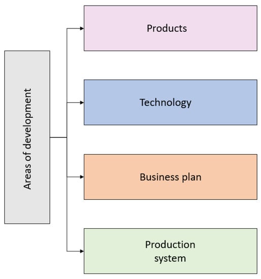 In their work, the authors noted that this manufacturing system evolution has been driven by technological and production advances, the alignment of companies’ business plans, and increasing product complexity, along with attempts to reduce production costs, increase product durability, and increase company profitability [72]. The four areas of development of manufacturing systems emerged as essential factors in the migration to mass customization, as companies were forced to review their existing manufacturing systems [72].