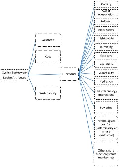 With the evolution of healthier lifestyle trends, more and more people have started engaging in sports activities, expanding the sportswear market. In 2018, the sportswear market was valued at USD 239.78 billion and a predicted compound annual growth rate (CAGR) of 10.4% from 2019 to 2025 [19]. This growing sportswear market comprises companies such as Nike, Inc., (Beaverton, OR, USA); Adidas AG, (Herzogenaurach, Germany); Li-Ning Company Ltd., (Beijing, China); Umbro Ltd., (Manchester, UK); Puma SE, Inc., (Herzogenaurach, Germany); Fila, Inc., (Seoul, South Korea); Lululemon Athletica Inc., (Vancouver, BC, Canada); Under Armour, (Baltimore, MD, USA); Columbia Sportswear Company, (Portland, OR, USA); and Anta Sports Products Ltd. Inc., (Xiamen, China) [19]. These brands offer sportswear options for a wide variety of sports categories. Due to the special nature of certain sports categories, some brands offer specialised sportswear products targeting specific sports categories. For example, POC, Pedla, Café du Cycliste, Rapha, Attaquer, Kirschner Brasil, and ASSOS are key sportswear brands that focus primarily on cycling wear [20].