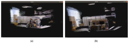 As shown in Figure 5, the sparse point cloud map of ORB-SLAM3 itself only stores the location information of feature points in the scene, which only possesses simple geometric information with a poor readability, making it difficult for the robot to reuse the sparse point cloud map to accomplish more advanced tasks, such as obstacle avoidance and human–machine interaction.