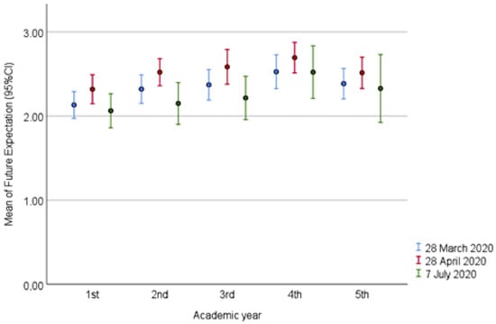 In studies conducted before the COVID-19 pandemic, it has been reported that the prevalence of depression and anxiety among first- and last-year students is higher than other grades. The most probable reason for this elevated depression and anxiety is the academic intensity of the first-year students and the employment anxiety of the last-year students [28,33]. To the best of our knowledge, this is the very first study reporting the appraisal of academic hopelessness levels in Turkish medical students with respect to different time periods of COVID-19 pandemic.