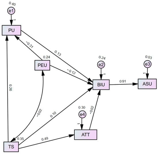 | Construct | PU | PEU | TS | AT | BIU | ASU |