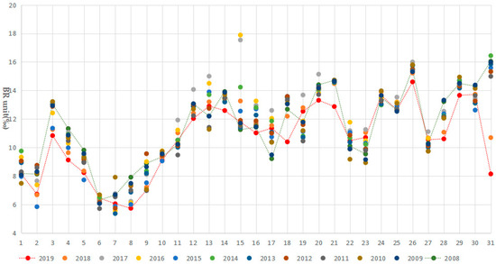 vit is an unobserved time fixed effect. 100 in Equations (9)–(11) means that data have been normalized by using Equation (1).