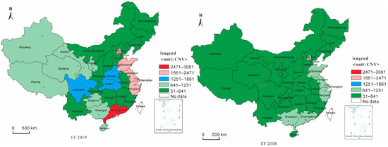 Figure 6, the EF increased by 2 levels and SS increased by 1 level in Hubei, while that of Hunan remained the same level from 2009 to 2019. As can be seen from