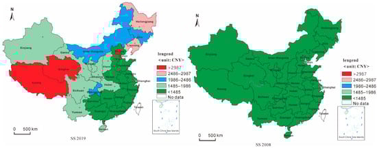Figure 6, the SS of Xinjiang ranks the second level, and that of Xizang the fifth level. This is the biggest difference between these regions. According to