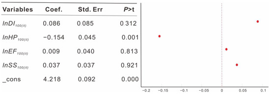 Compared with individual-fixed-effects model, two-way-fixed-effects model, random-effects model, and the time-fixed-effects least square model were selected to estimate Equation (5). The estimation results are shown in