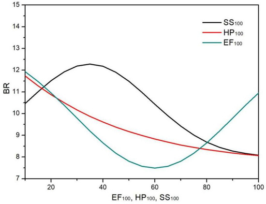Figure 8 is drawn based on Equations (6)–(8), which presents the corresponding relationship between BR and independent variables EF