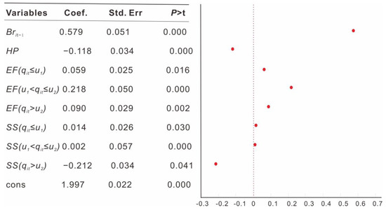 t−1 has a promoting effect on BR. Similar to basic panel model and Gaussian function fitting, HP has a restraining effect on BR. EF has a positive effect on BR, and the effect is strongest between 3.84 <