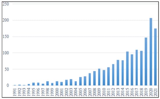 Number of publications from 1991 to 2021.