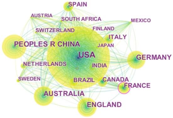 From the Figure 4 institutional collaboration map, it can be seen that institutions with more research in this field are concentrated in China. It is undeniable that China’s rapid economic development has directly led researchers to pay more attention to biodiversity and economic growth. Followed by Australia’s James Cook University and the University of Queensland, it can be seen from the relevant Australian research institutions that follow, Australia, as a country with rich biodiversity, also has many policies related to ecological protection. Related studies and discussions provide advice and guidance on the balance between biodiversity conservation and economic development.