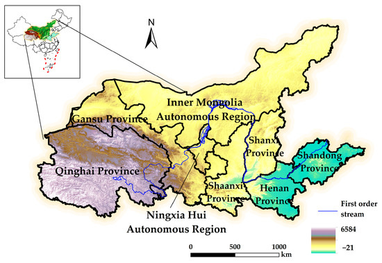 Location of the Yellow River Basin. Note: based on the standard map from the Ministry of Natural Resources standard map service website GS(2020)4619 [28], the map boundary has not been modified.