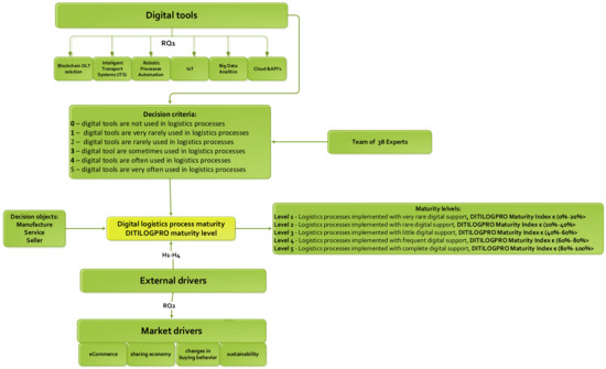 To the best of our knowledge, there has been no previous research on the relationship between the digital maturity of logistics processes and key market trends, e.g., the shift to sustainable practices, the shift to e-commerce, the speed of delivery, and the sharing economy. Thus, this paper contributes to the existing literature by: