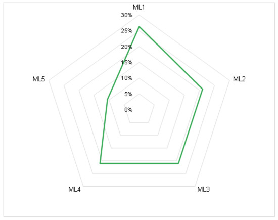 - ML5 (Excelling)—the frequency of adoption of the high-intelligence digital solutions for logistics processes is very high