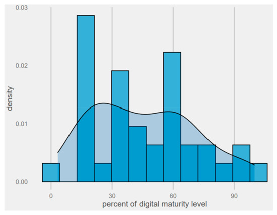 The digitalization of logistics processes is an evolutionary process [13,14]; thus, maturity theory is a suitable approach to investigating this phenomenon. The maturity in the context of digitalization can be analyzed from the perspective of the digital capacities of a company (how intensively a company applies digital technologies) and the management capabilities (e.g., governance or leadership) [15]. The ongoing academic discussion leans towards distinguishing between the broader context of the digital transformation of companies (capability to introduce the change) and digitalization sensu stricto (application of digital technologies). In this paper, we will focus on how intensively (measured by frequency) companies apply digital technologies in logistics processes and define this as the digital maturity of logistics processes.