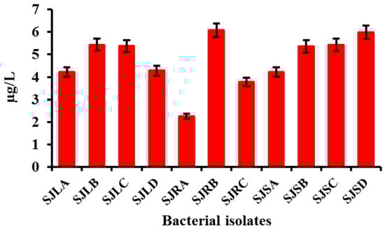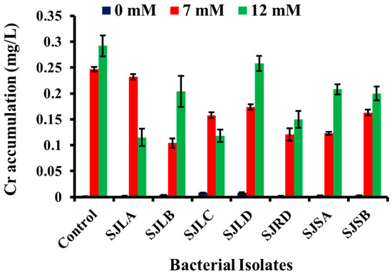3.7. Cr Accumulation in Plants Treated with Bacterial Isolates