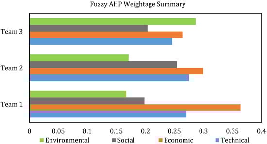 The AHP is one of the most widely used MCDM tools that can be used to analyze, measure, and synthesize decision problems []. There have been numerous applications of the AHP, including selecting among competing alternatives in multi-objective environments, allocating scarce resources, and forecasting []. For determining the relative priorities of different selection criteria and sub-categories, Fuzzy AHP uses fuzzy numbers as a pairwise comparison scale. This approach can adequately handle the inherent uncertainty and imprecision of human decision-making processes and offer an appropriate level of flexibility and robustness so that a decision maker can comprehend and understand a decision problem []. The steps of the calculations are explained as follows [,]: