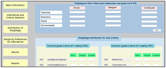 In particular, the objective of this research was to develop a decision support system that would integrate all stakeholders’ preferences into an IPD framework for selecting the most sustainable structural material from technical, economic, social, and environmental sustainability points of view. The activities associated with the fulfilment of the research objectives include the identification of structural materials used for multistory building construction through the literature review, industry practices, and expert opinion; sustainability analysis (technical, economic, social, and environmental aspects) of the structural materials in use with the help of the tools available (LCC, LCCA, etc.) and expert opinion; review of the selection process for structural materials from the perspective of sustainable construction practices; several interview sessions with industry experts, project owners, design teams, and constructors, conducted in addition to the literature review, to determine the details of existing practices; the development of sub-criteria for all of the pillars of sustainable construction, primarily through the literature review, and then validating and finalizing them with feedback from industry and academic experts; and development of the DSS using MCDM techniques to aid the selection of the most sustainable structural material for multistory building construction.