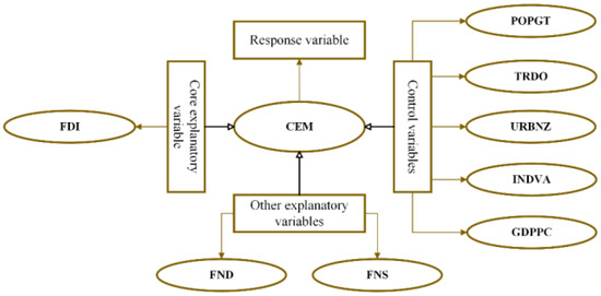 The current research adopts data from 41 African countries from 2005 to 2019 as its sample. This research assesses Foreign Direct Investment (FDI) and other variables influencing CO2 emissions as its primary aim. CO2 emission per capita, denoted as CEM, is employed as the response variable. The data are sourced from the website of Our World in Data [54]. FDI annual inflows, denoted as FDI, are chosen as the core explanatory variable. In contrast, financial development and financial structure, denoted as FND and FNS, respectively, are chosen as the other explanatory variables.