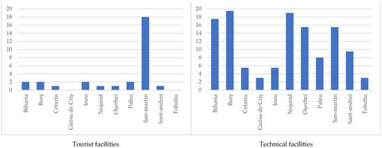 Tourist and technical facilities supply. Source: own elaboration based on Stașac et al. (2020) [].
