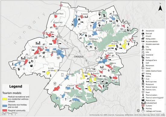 For a sustainable OMA tourist consumption, the analysis of all factors, determinants and variables led to the identification of three tourism models in the OMA, such as the medical–recreational and eco–residential wellness network tourism model, which relates to thermal waters and applies to localities such as Băile Felix and 1 Mai spa resorts, Sânmartin, Cordău, Haieu, and Cihei as tourist services providers, with Husasău de Criș, Ineu and Livada de Bihor related to the same wellness model. The discovery–holiday and co-visit tourism is the second model that applies to the southern and northern part, where hills and forests dominate and are suitable for walking and cycling. The third model refers to the marginal community model and applies to the marginal OMA localities, such as Șușturogi, Botean, Leș, and Toboliu, for a full immersion into an unspoilt bucolic life.