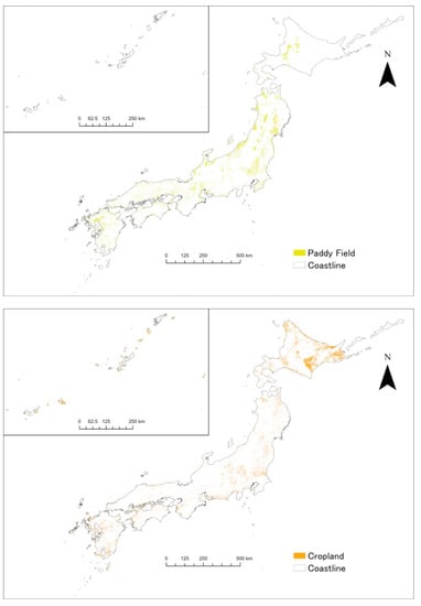 - Katayama, N.; Baba, Y.G.; Kusumoto, Y.; Tanaka, K. A review of post-war changes in rice farming and biodiversity in Japan. Agric. Syst. 2015, 132, 73–84. [Google Scholar] [CrossRef]