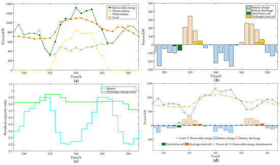 - After introducing the hydrogen storage system, the system can flexibly program the number of micro-generators according to the load demand, significantly reduce the number of distributed energy and battery configurations, and improve the system’s economy;