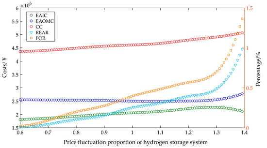 6.6.2. Influence of Hydrogen Storage System Price on Planning Results