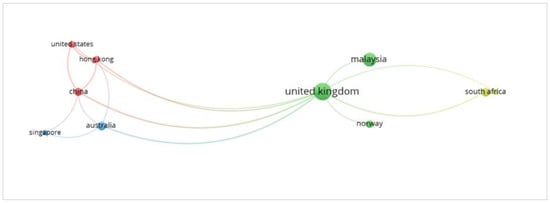 Further, with a minimum of three documents per country, the citations among countries were analysed using bibliographic coupling. For each of the countries, the total strength of the bibliographic coupling links with other countries was calculated. This showed the relationship between the documents when two studies cite the same third document; this was relevant to the cited authors, institutions, and countries [48]. Closely related documents are cited together. The results showed that the UK had the strongest links, followed by Australia and China (Table 3).